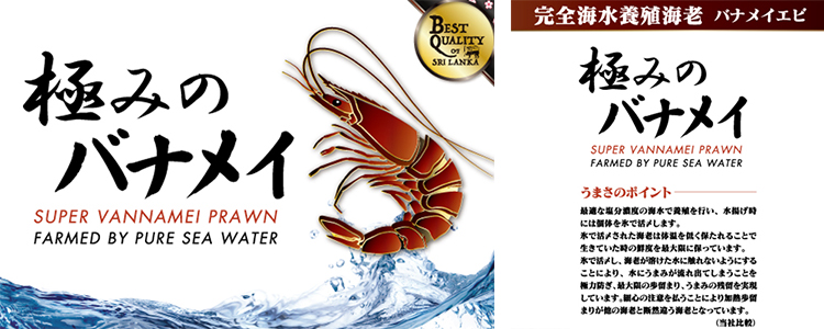 当社が取り扱うバナメイ海老は、スリランカ産の天然バナメイ海老で品質・味ともに優れており、お客様より高評価をいただいています。